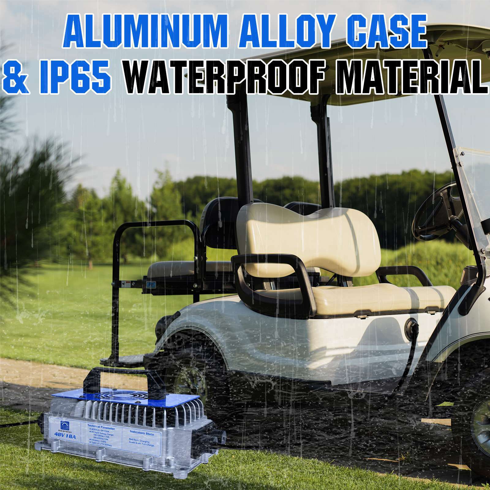 -Sturdy Shell: Waterproof and drop-proof golf cart charger. 48V Li-ion battery charger, aluminum alloy casting shell, sturdy and durable, waterproof, drop-proof, explosion-proof, etc., to meet the requirements of golf carts, automobiles, temperature-resistant and shock-resistant.